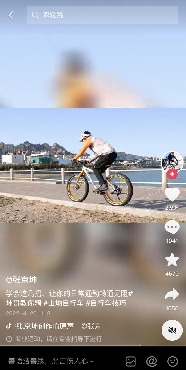 “90后”山地攀爬車手、極限運動創(chuàng)作者@張京坤 就常在抖音分享自己的騎行日常,他發(fā)布的城市騎行技巧、夏天如何正確佩戴護具等“干貨”,累計已有1977萬網友點贊,用單車“丈量”各種地形的視頻合集也超5385萬次播放。